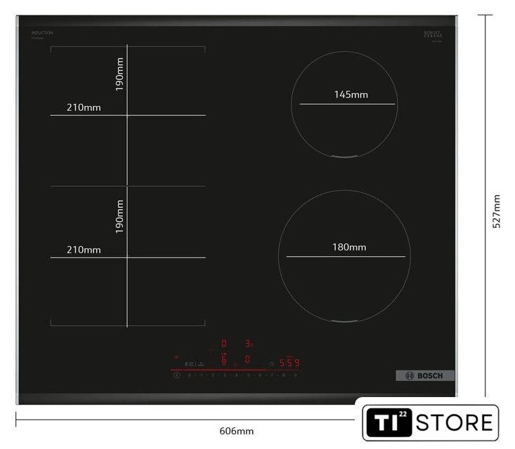 | Подробная информация о конфорках | 1 x 1.6 (2.2) kW, 1 x 2.0 (3.1) kW, 2 x 2.5 (3.7) kW |