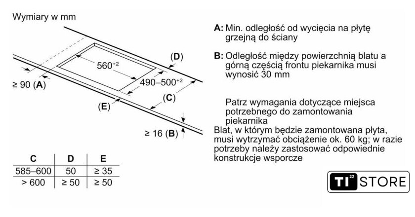Размеры ниши для встраивания |