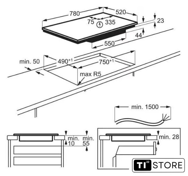 | Подробная информация о конфорках | Левая передняя: 2300/3200 Вт, 210 ммЛевая задняя: 2300/3200 Вт, 210 ммПередняя (??центральная): 1400/2500 Вт, 145 ммПравая задняя: 2300/3600 Вт, 240 мм |