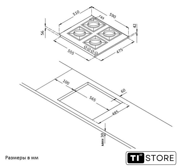 | Количество конфорок | 4 |