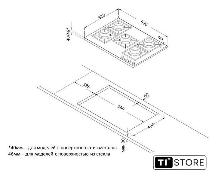 | Овальные/прямоугольные конфорки | нет |