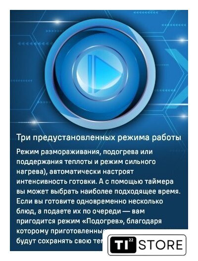 | Автоматические программы | размораживание, подогрев, сильный нагрев |
