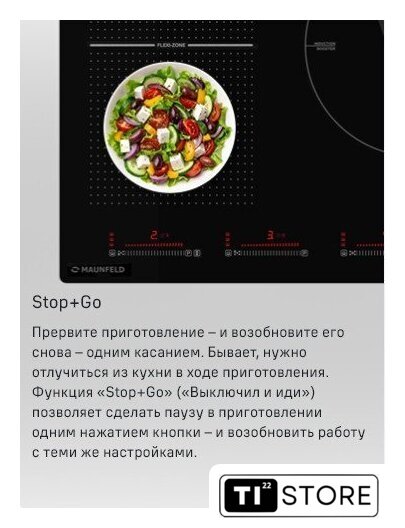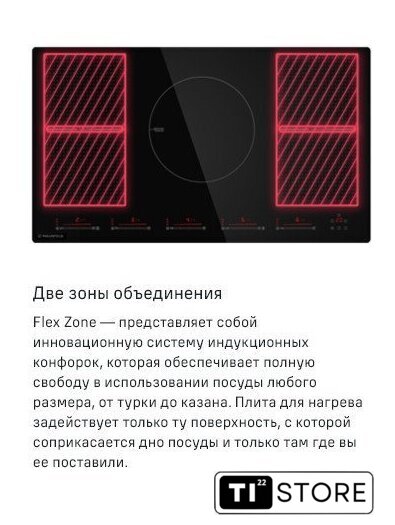 | Подробная информация о конфорках | 2х1500Вт (бустер 2000Вт)2х2000Вт (бустер 2800Вт)1x2300Вт (бустер 3000Вт) |