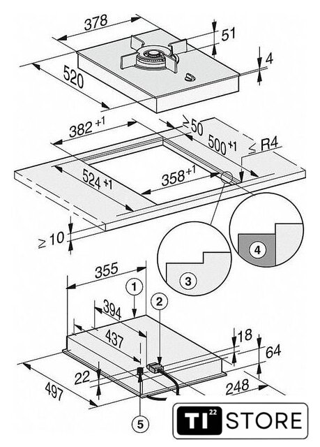 | Газовые конфорки | 1 |