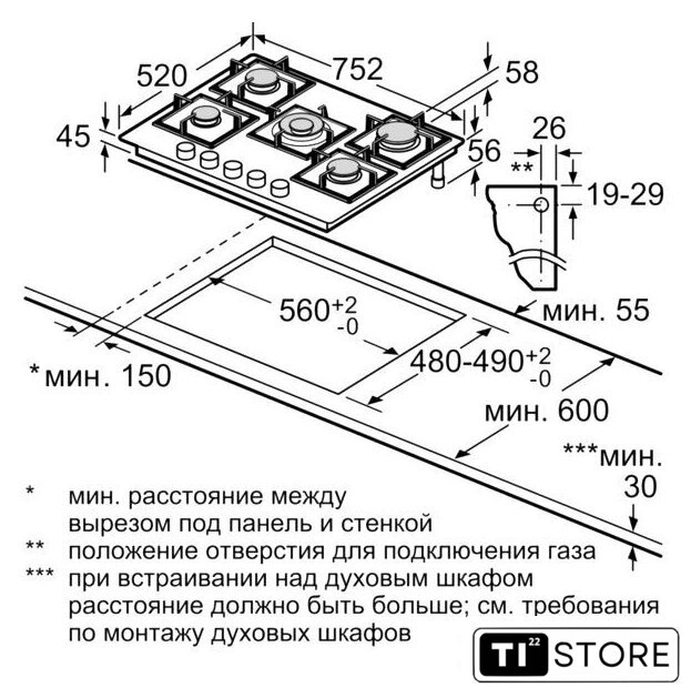 Размеры ниши для встраивания |
