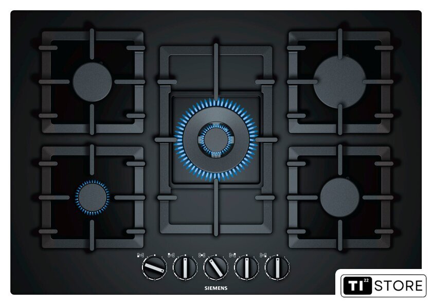 | Подробная информация о конфорках | Левая задняя: стандартная горелка 1,75 кВтПравая задняя: высокоскоростная горелка 3 кВтЦентральная: вок 4 кВтЛевая передняя: экономичная горелка 1 кВтПравая передняя: стандартная горелка 1,75 кВт |