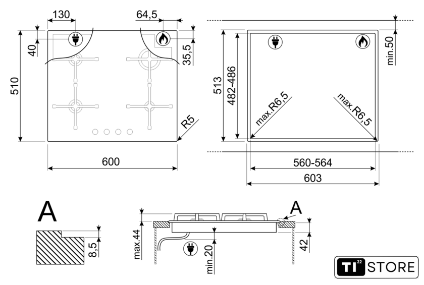 | Овальные/прямоугольные конфорки | нет |
