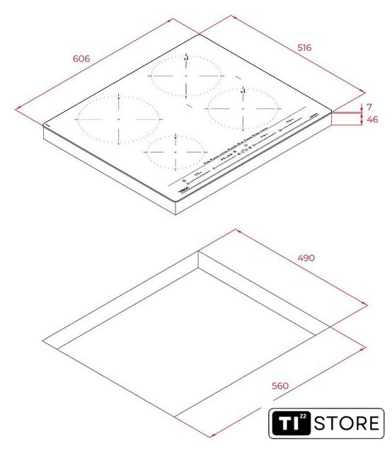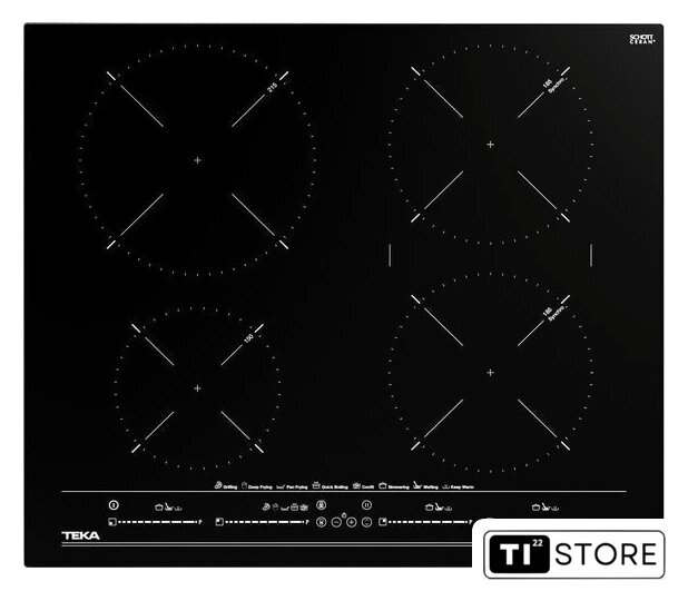 | Подробная информация о конфорках | 1 индукционная зона Ø 215 мм2 индукционные зоны Ø 185 мм1 индукционная зона Ø 150 мм |