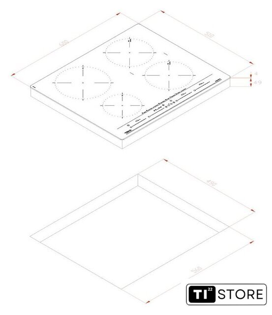 | Подробная информация о конфорках | 1 индукционная зона Ø 215 мм2 индукционные зоны Ø 185 мм1 индукционная зона Ø 150 мм |