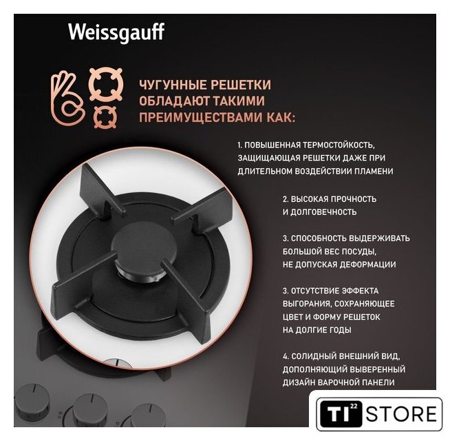 | Чугунные конфорки | нет |
