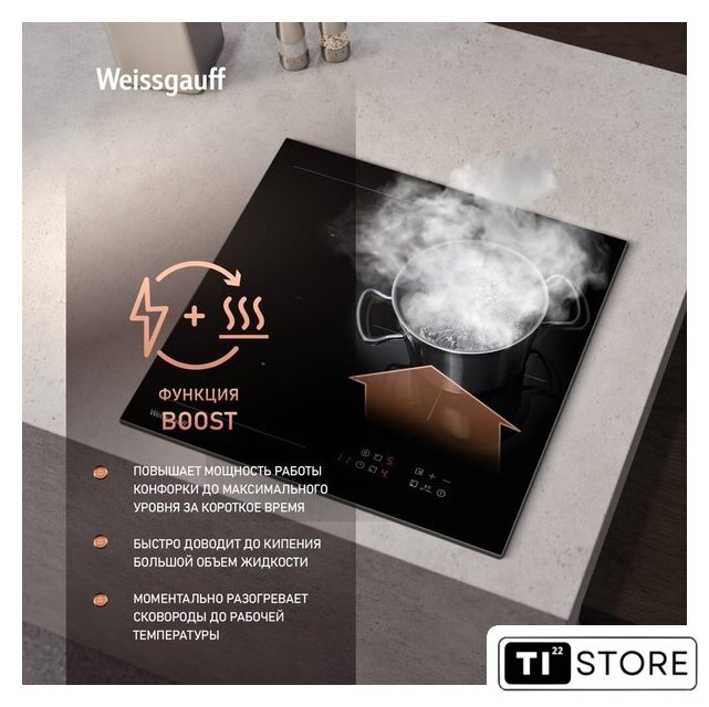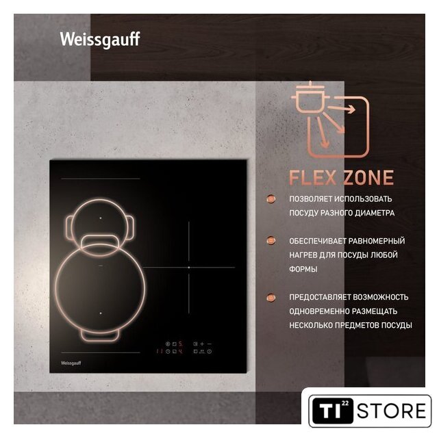 | Подробная информация о конфорках | 2 Ø 180мм - 1800Вт/Boost 2000 Вт, 1 Ø 210мм - 2300ВтBoost 2500Вт, Flex Zone - 3000ВтBoost 3600Вт |