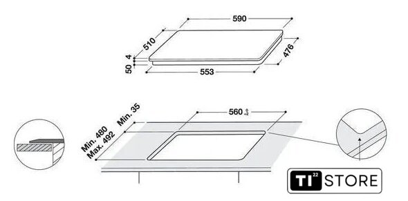 | Овальные/прямоугольные конфорки | 1 |