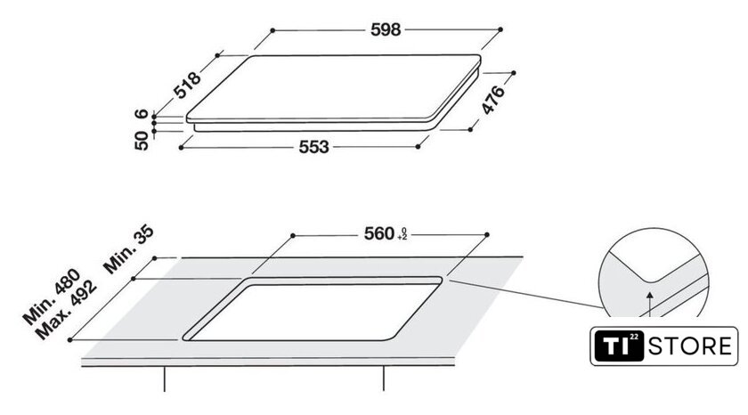 | Овальные/прямоугольные конфорки | 1 |
