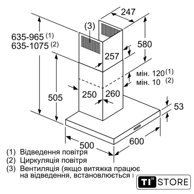 | Минимальная производительность отвода | 230 куб. м/ч |