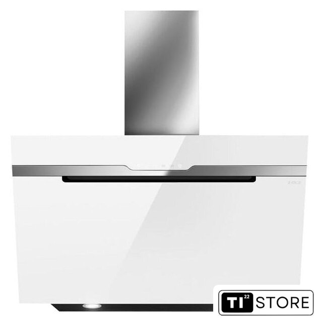 конструкция наклонная, монтаж настенный, ширина 59.8 см, управление сенсорное, производительность вытяжки 603 м³/ч, производительность мотора 1200 м³/ч, цвет белый/нержавеющая сталь