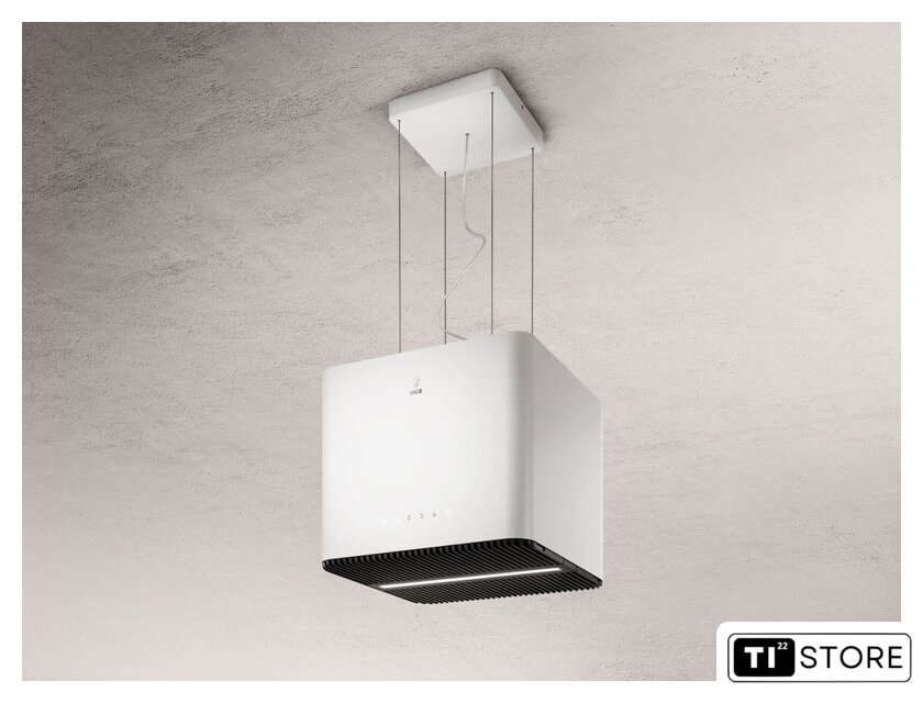 конструкция коробчатая, монтаж островной, ширина 42 см, управление сенсорное, производительность вытяжки 445 м³/ч, производительность мотора 1100 м³/ч, цвет белый