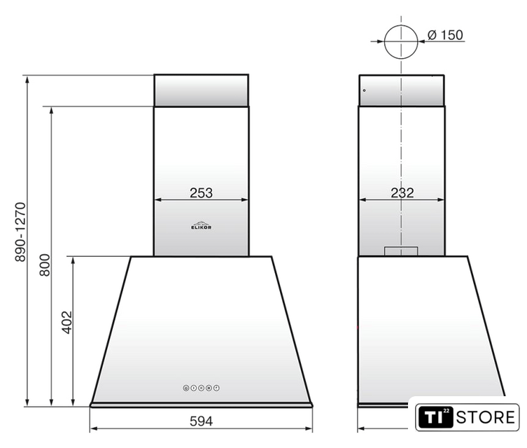 | Диаметр воздуховода | 150 мм |
