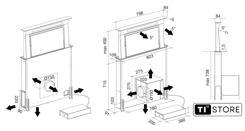 монтаж для встраивания, управление сенсорное, производительность мотора 800 м³/ч, ширина 79.8 см