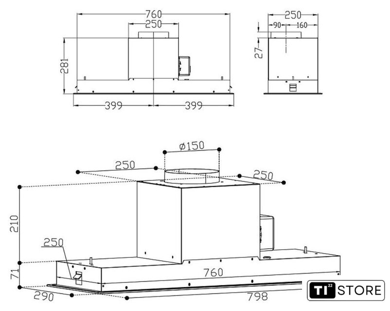 | Диаметр воздуховода | 150 мм |