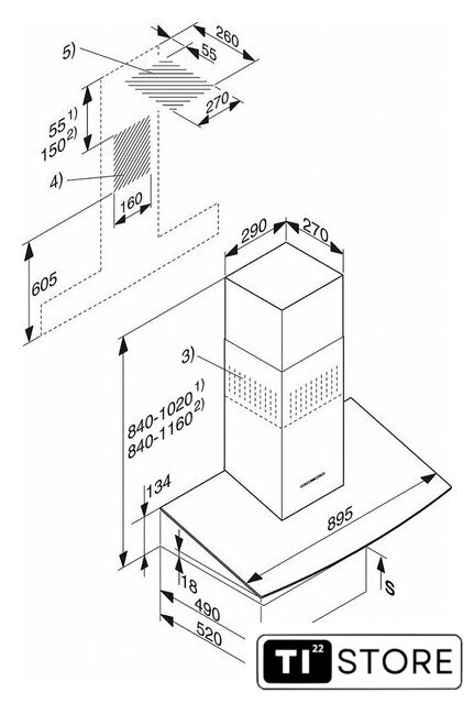 | Минимальная производительность отвода | 150 куб. м/ч |