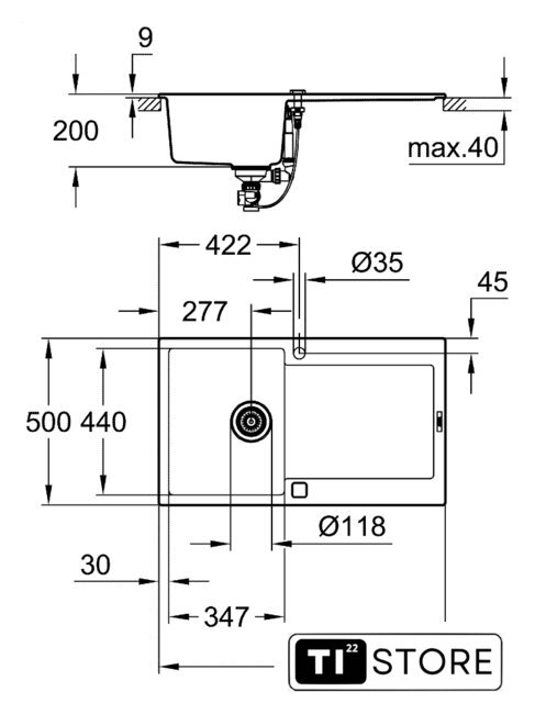 Способ установки | врезная на столешницу |