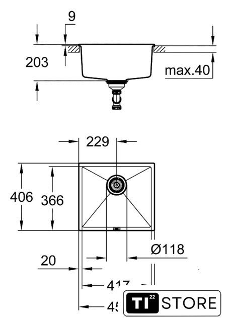 Глубина мойки | 40.6 см |