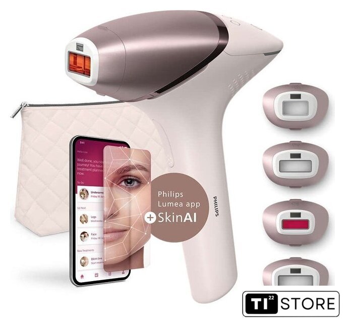 | Комплект поставки | Аппарат IPL серии 9900 для удаления легких волосИнтеллектуальная насадка для эпиляции лицаИнтеллектуальная насадка для эпиляции зоны бикиниИнтеллектуальная насадка для эпиляции подмышекПриложение Lumea IPL с эксклюзивными функциями SkinAIРоскошный футляр |