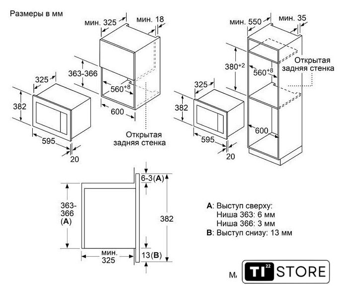 Размеры ниши для встраивания |