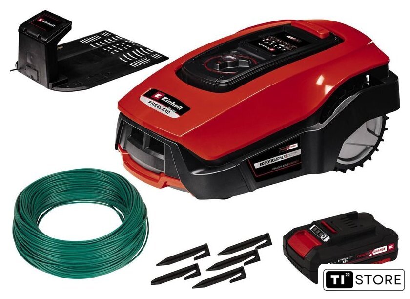 | Комплектация | В комплект поставки входят 130 м кабеля, 190 крепежных крючков, 3 лезвия и 4 соединительных зажима, аккумулятор Power X-Change емкостью 2,5 Ач и зарядная станция. |