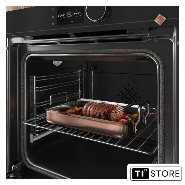 электрический с конвекцией, объем 73 л, 13 режимов, автопрограммы, очистка пиролитическая, 4 стекла в дверце, направляющие проволочные + телескопические, термощуп
