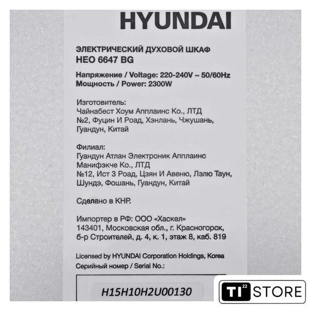 | Конвекция | есть |