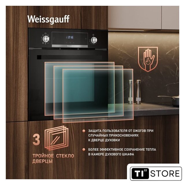 | Количество стекол дверцы духовки | 3 |