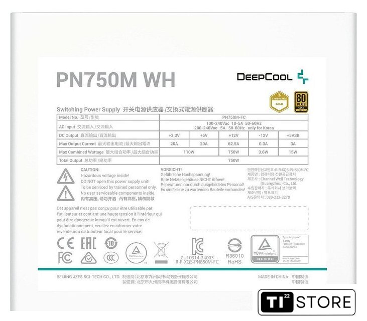 | Комбинированная нагрузка по +12V | 750 Вт |