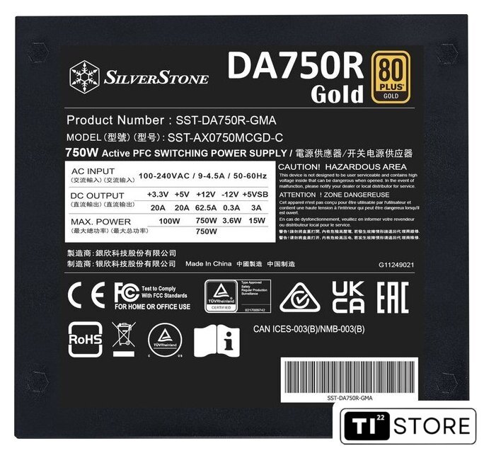 | Комбинированная нагрузка по +12V | 750 Вт |