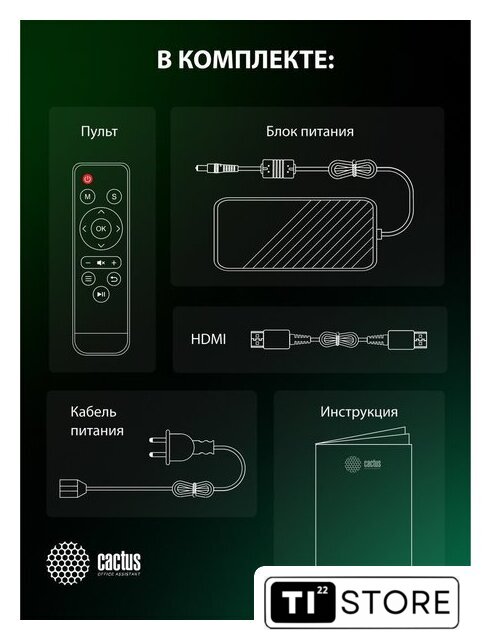 | Комплектация | - пульт ДУ- руководство пользователя- кабель питания и адаптер- кабель HDMI- салфетка из микрофибры |