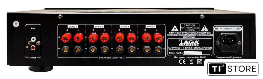 | Мощность на канал при 4 Ом | 18 Вт (активны все зоны; 30 Вт при одной активной зоне) |