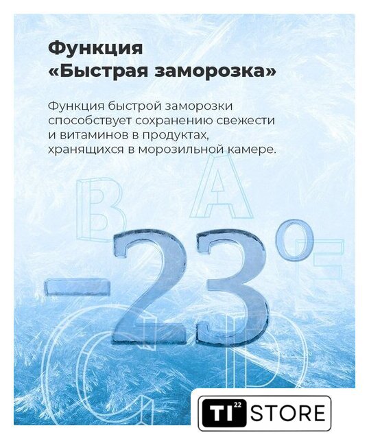 | Режимы и функции | суперзаморозка, независимая регулировка температуры, сигнал открытой двери |