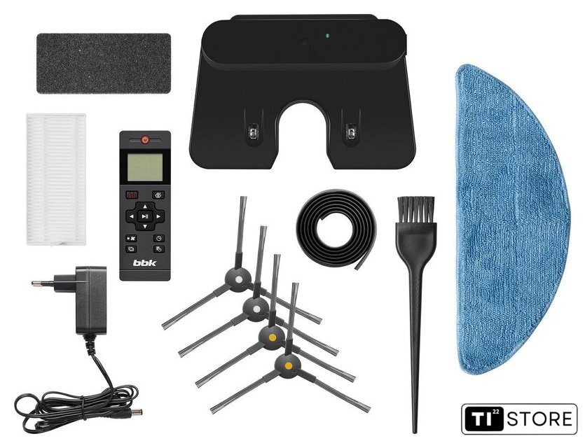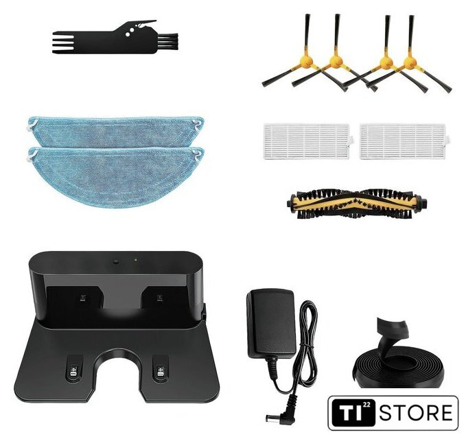 | Комплектация | ПылесосЩетка для чистки фильтра Тряпка для влажной уборки - 2 штЗарядная док-станция Контейнер для водыПульт ДУАккумуляторная батареяОсновная щеткаБоковая щетка - 4 штФильтр HEPA - 2 штМагнитная лента |