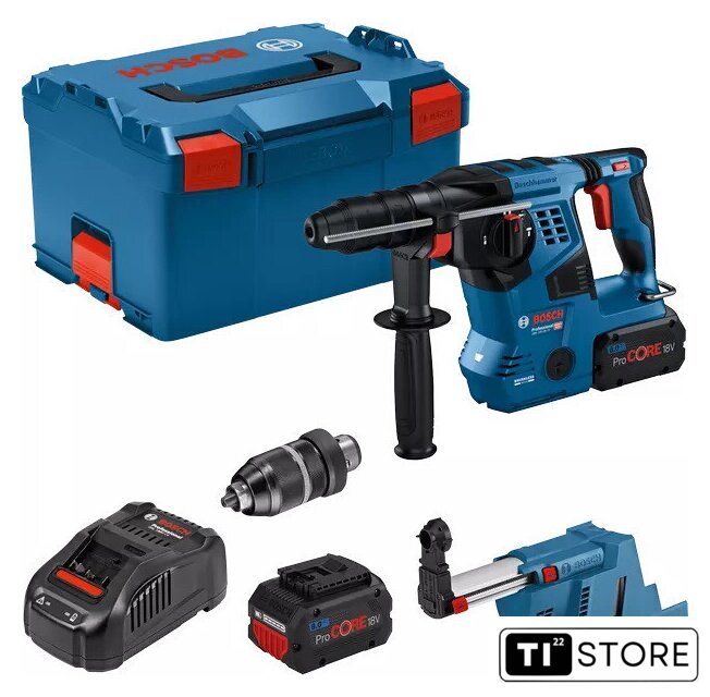 | Комплект поставки | - смазка в тюбике- дополнительная рукоятка- ограничитель глубины- кейс L-BOXX 238- 2 аккумулятора ProCORE18V 8.0Ah- з/у GAL 1880 CV- система пылеудаления GDE 18V-16 Professional |