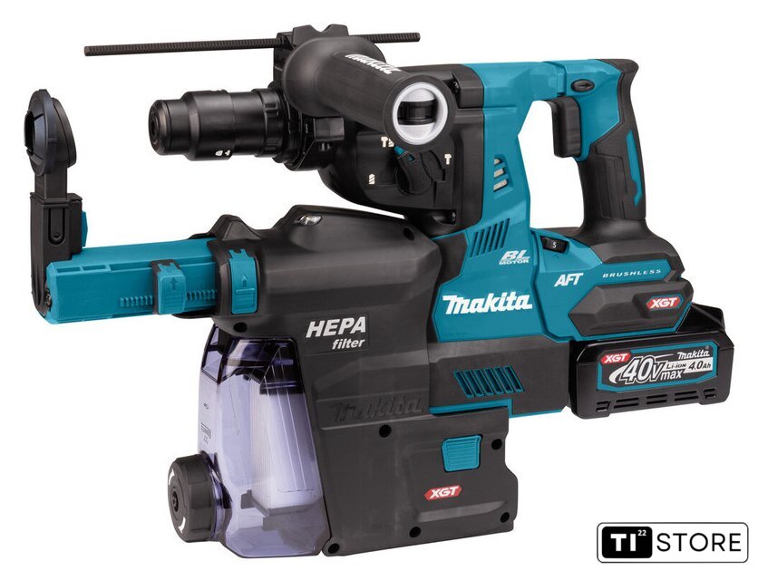 | Комплект поставки | - Перфоратор HR002G- Антивибрационная боковая ручка (126882-3)- Ограничитель глубины (331886-4)- Смазка для дрелей и долот (198993-4)- Комплект пылеудаления (абсорбер) DX14- 2 аккумулятора XGT 40 В, макс. 4,0 Ач с индикатором заряда BL4040- Стандартное зарядное устройство XGT 40V Max DC40RA- Кейс для системы MAKPAC |