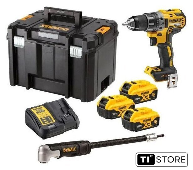 | Комплектация | - кейс- зарядное устройство - три аккумулятора - угловая гибкая насадка DT20502-QZ - магнитный держатель бит |