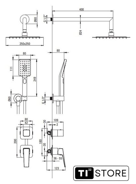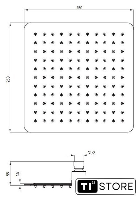 | Диаметр (ширина) верхнего душа | 250 мм |