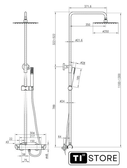 | Диаметр (ширина) верхнего душа | 250 мм |