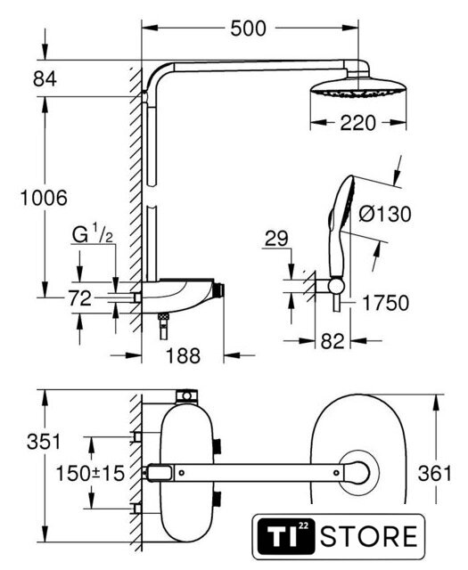 | Тип | душевая система (с верхним душем) |
