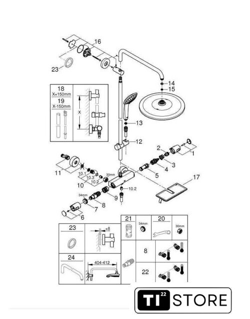 | Диаметр (ширина) верхнего душа | 310 мм |
