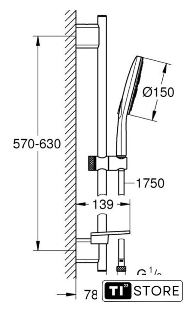 | Диаметр (ширина) ручного душа | 150 мм |