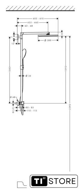 | Диаметр (ширина) верхнего душа | 300 мм |