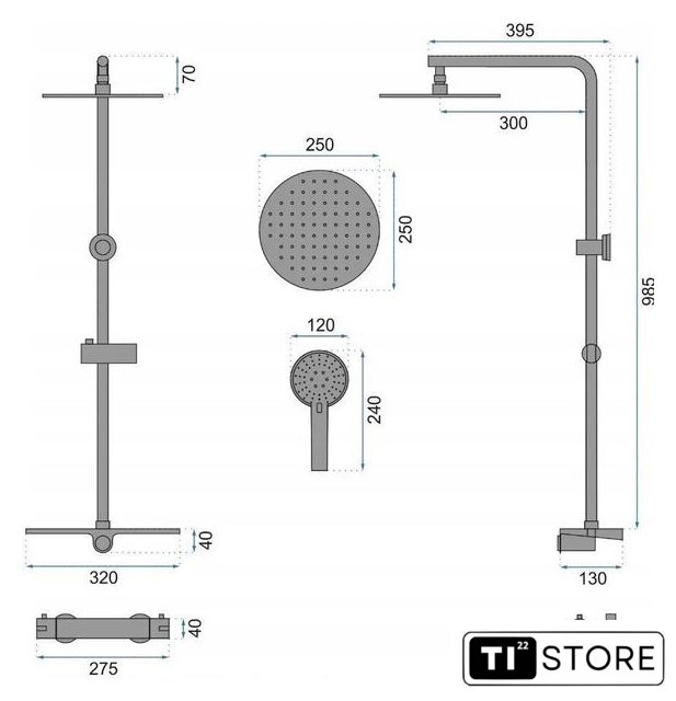 | Диаметр (ширина) верхнего душа | 250 мм |