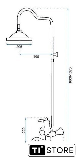 | Диаметр (ширина) верхнего душа | 205 мм |