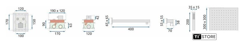 | Диаметр (ширина) верхнего душа | 300 мм |
